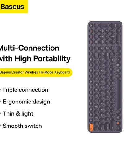 Le prix initial était : 699,00 Dhs.599,00 DhsLe prix actuel est : 599,00 Dhs.Baseus K01B Clavier Sans Fil Tri-Mode – B00955504833-00