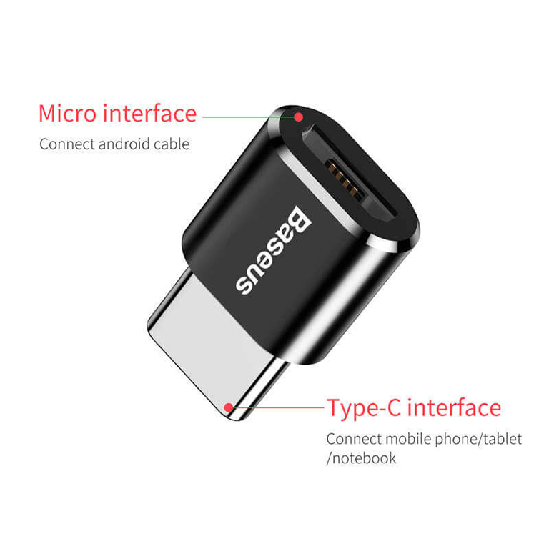Baseus MicroUSB/USB-C Adapter allows you to connect devices with a MicroUSB connector to a laptop, PC or charger with a USB-C interface. The adapter supports current up to 2.4 A, which guarantees fast charging. This accessory also allows you to exchange data between two devices at high speed.