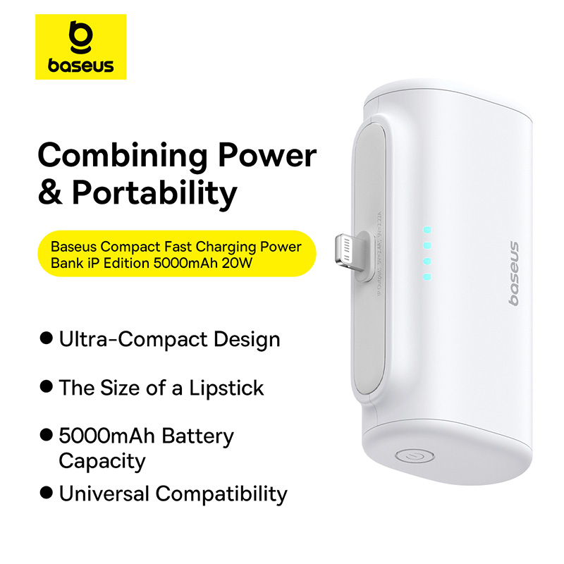 Baseus Compact Power Bank iPhone Edition 20W Charge Rapide 5000mAh – Blanc – P10068307213-00