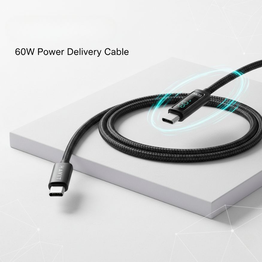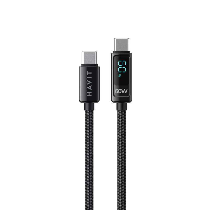 Havit By Baseus – Cable tressé 60W Type C – Type C avec afficheur LED – Ultra rapide