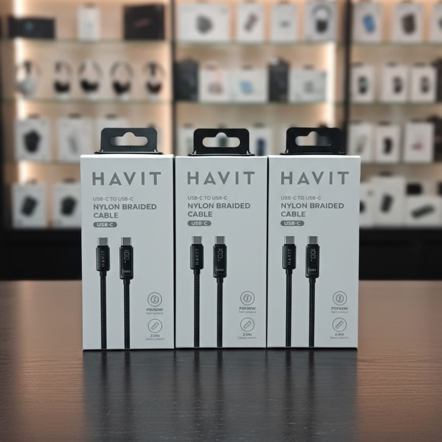 Havit By Baseus – Cable tressé 100W Type C – Type C avec afficheur LED - ultra rapide